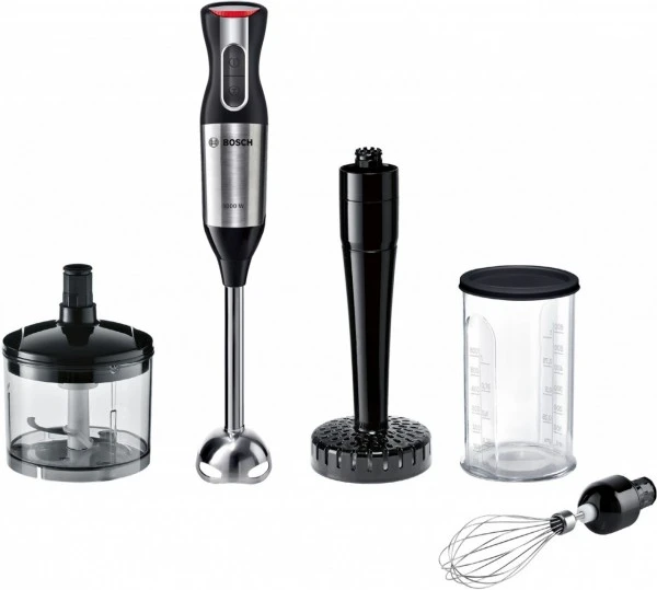 - Hochwertiger Edelstahl-Mixfuß: Verlässlich deutsche Bosch Qualität: robust und langlebig, geschmacksneutral, verfärbt nicht. Ideal für die Zubereitung von Karotten-/ oder Tomatensuppe.