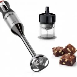 - Hochwertiger Edelstahl-Mixfuß: Verlässlich deutsche Bosch Qualität: robust und langlebig, geschmacksneutral, verfärbt nicht. Ideal für die Zubereitung von Karotten-/ oder Tomatensuppe.