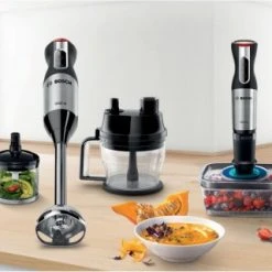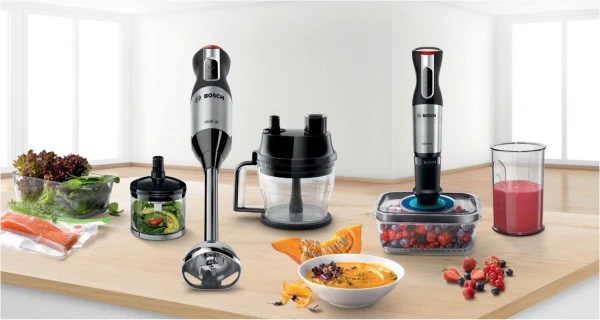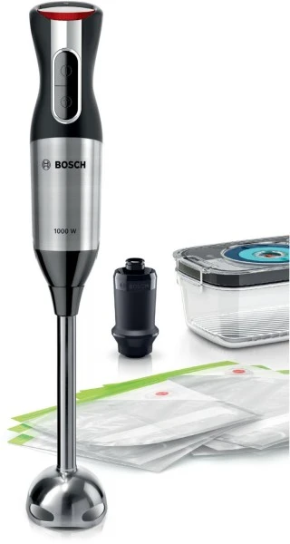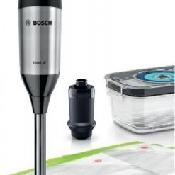 - Bosch Sicherheitsverriegelung: dank patentiertem „Klickmechanismus“ rasten Mixfuß und Zerkleinerer hörbar ein, mit sicherer Fixierung am Motorteil.