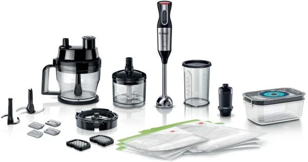 - Bosch „QuattroBlade – Technologie“: Das innovative, speziell gehärtete und geschärfte Vier-Klingen-Messer sorgt für perfekte Verarbeitungsergebnisse.