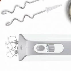 Moderne Motortechnik: kraftvoll, leise 64,6 dB(A) und leicht, Anschlusswert: 500 Watt, griffiges Soft-touch-Gehäuse, 5 Geschwindigkeitsstufen mit unterschiedlicher Drehzahl, zusätzliche Moment- / Turbo-Stufe, separate Auswurftaste für Rührbesen und Knethaken, 2 hocheffiziente Fine-Creamer-Besen für optimale Schlag- und Rührergebnisse in kürzester Zeit, 2 stabile Knethaken, Anschlussmöglichkeit für Stabmixerzubehör, Kabelumwicklung mit Kabelclip, XL-Universalzerkleinerer mit herausnehmbarem Feinschliff-Edelstahlmesser, hochwertiger Edelstahl-Mixfuß, Eject-Mechanismus ermöglicht leichte Mixfuß-Abnahme, skalierter Mixbecher mit Deckel, Gerätemaße (HxBxT): 14,2 x 20 x 7,5 cm.