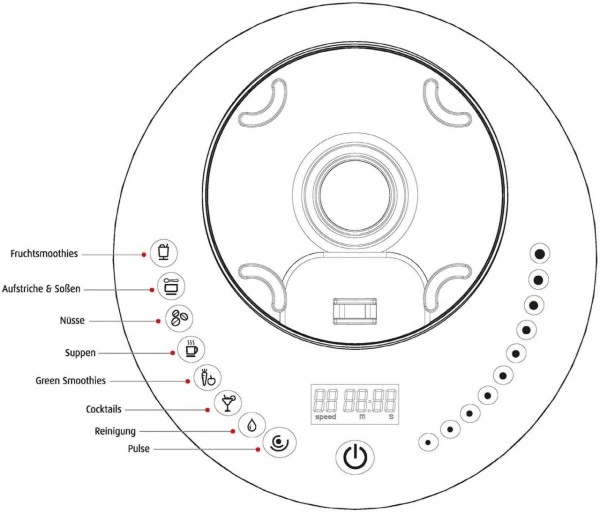 7 Automatikprogramme sorgen für ein perfektes Ergebnis: Fruchtsmoothies | Soßen | Nüsse | Suppen | grüne Smoothies | Cocktails | Reinigung. Ideen dafür liefert das mitglieferte Rezeptbuch. Aber natürlich sind ihrer Kreativtät keine Grenzen gesetzt: 10 manuell anwählbare Geschwindigkeitsstufen und die Pulsfunktion stehen Ihnen zur Verfügung. Ein Stampfer mit integiertem Thermometer ermöglicht jederzeit eine Temperaturkontrolle – das spielt besonders in der Rohkosternährung eine wichtige Rolle.
