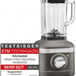 Das eigens von KitchenAid entwickelte, 3-teilige Mix-System umfasst einen Motor mit 1,5 PS Spitze (mit Intelli-Speed), eine einzigartige asymmetrische Klinge und einen Behälter mit Riffelungen