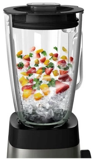 Der große 2-l-Behälter verfügt über ein Betriebsfassungsvermögen von 1,5 l zum Mixen köstlicher Smoothies für die ganze Familie oder zum späteren Verzehr.