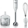 Inkl. umfangreichem Zubehör-Set bestehend aus Mixbecher mit Deckel, Schneebesen, Zerkleinerer und Wandhalterung.