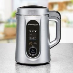 Das attraktive Cool-Touch Gehäuse umfasst einen Edelstahl Innenbehälter mit integrierter Heizung. Der Deckel ist mit einer effizienten, kraftvollen Mix- und Rühreinheit verbunden: ein 3-flügeliges Edelstahlmesser, das mit einer speziellen, abnehmbaren Pürierglocke ausgestattet ist, sorgt für besonders feine Texturen beim Mixen der Veggie Drinks.