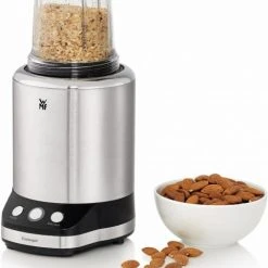 Ab jetzt steht Vielfalt auf dem Speiseplan. Denn der WMF KULT X Multifunktionsmixer ist ein leistungsstarker Alleskönner, der mit 900 Watt und zwei Geschwindigkeitsstufen von der harten Nuss bis zum sanften Pfirsich einfach alles zerkleinert, hackt, mahlt, mixt, rührt, zerreibt, püriert – und dabei immer gut aussieht. Möglich macht es das im Paket enthaltene umfangreiche Zubehör: Die Flachklinge oder die 6-flügelige Kreuzklinge sorgen für vielfältige Anwendungsmöglichkeiten. Und mit den vier Mixbehältern und zwei auslaufsicheren Trinkdeckeln können Smoothies, Shakes & Co. ganz bequem daheim oder unterwegs genossen werden.